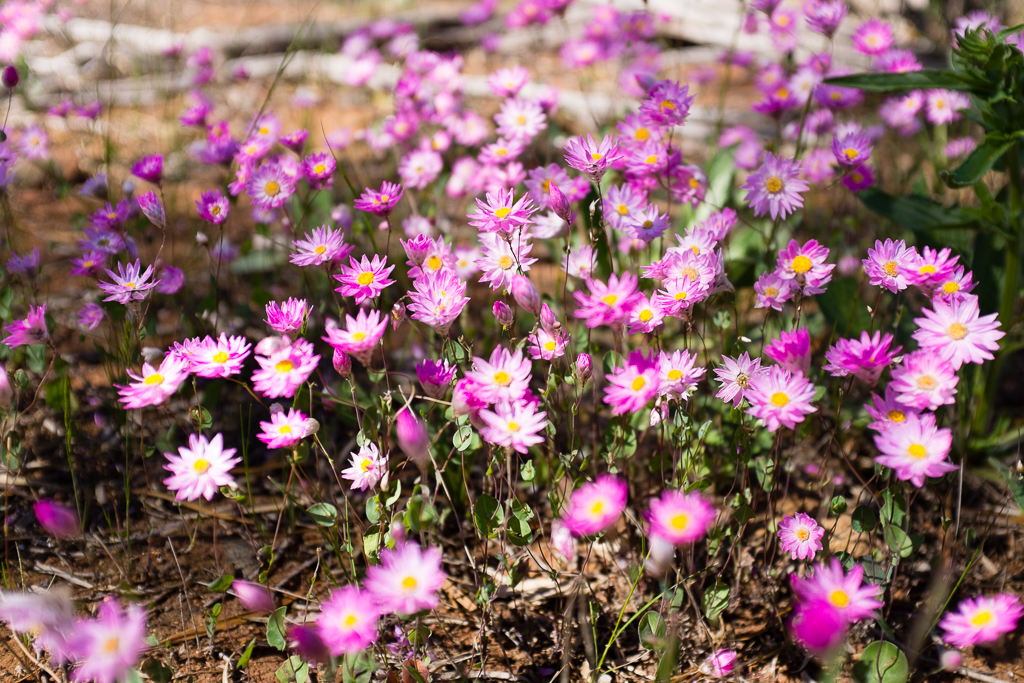 August through to Late September is wildflower season in Western Australia. Parts of the state are famous for being literally carpeted with a myriad of flowers, from the ‘backyard’ everlastings to rare orchids, Banksias and the mysterious Leschenaultia “wreath” flowers.
