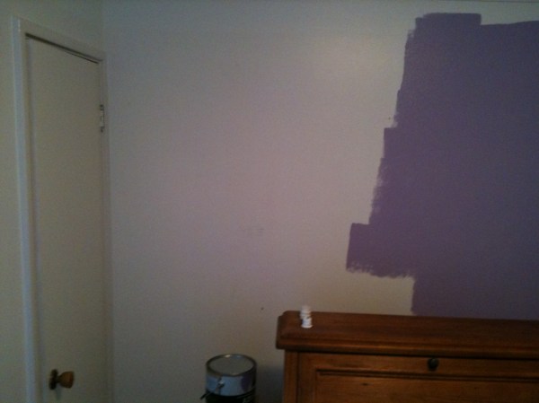 The plaster was in a mess, so it needed a lot of patching first, but soon we were underway and the room was transformed. It took nearly 3 coats to get it all smooth and matt like a good paint should be, and now she has a lilac room with darker purple feature wall.