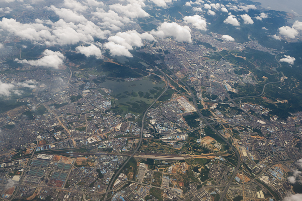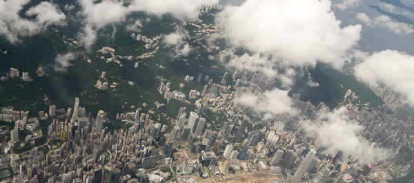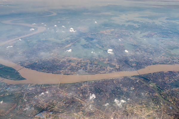 Hong Kong and then mainland China from the air was amazing – its a buzz of activity, construction, shipping, new roads, industry like you’ve never seen it anywhere else. Expansion and industrialisation is the name of the game and it looks like nothing is stopping the Chinese from modernising their entire way of life. The land was criss crossed with new motorways and railways under construction and whole cities were basically factories. Astounding.