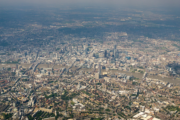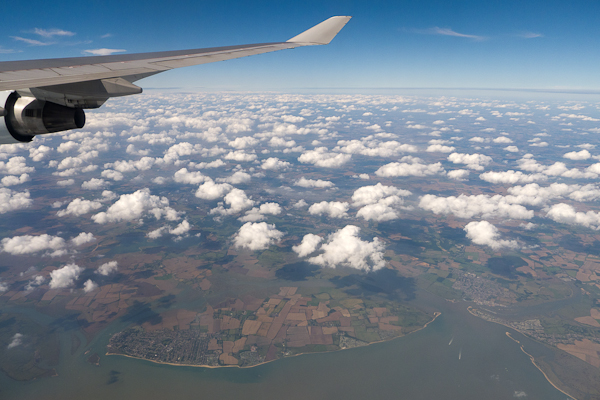 Finally, we were over England – the Essex/Suffolk coast came into view before we headed over London, past the City, Buckingham Palace, Kew Gardens and then over suburbia and into land.