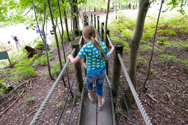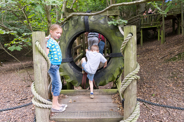 The next part is the wooden walkway through the forest, which is still cool.  There are giant swings too – Ella was only just big enough to have a go on those – she loved it, swinging 30 feet into the air.  Health and safety?  Not here, guv.