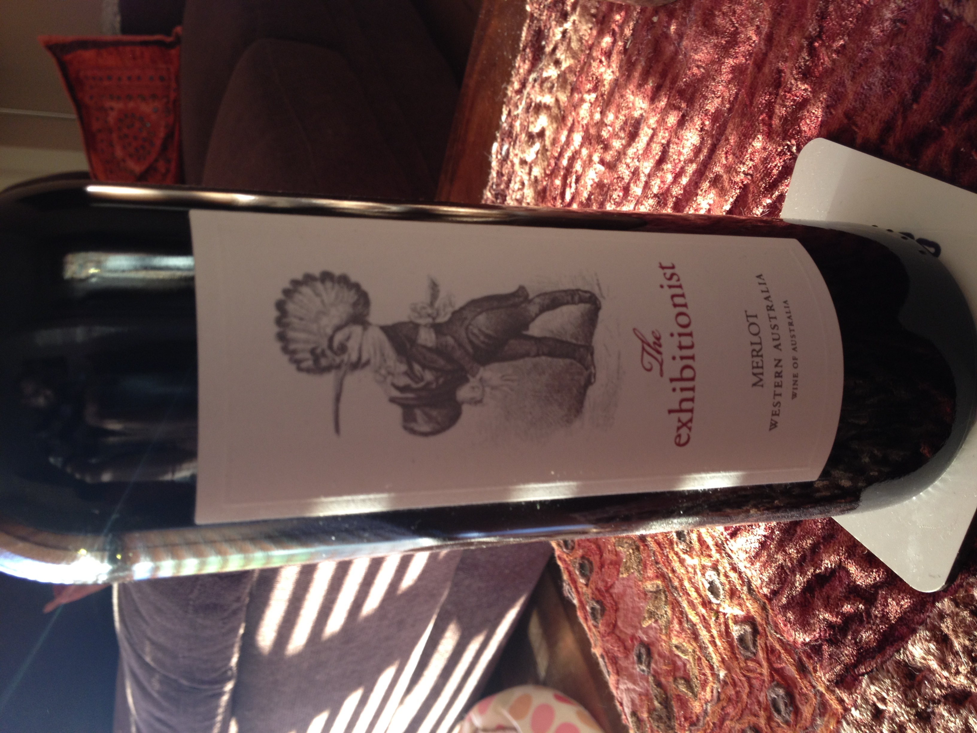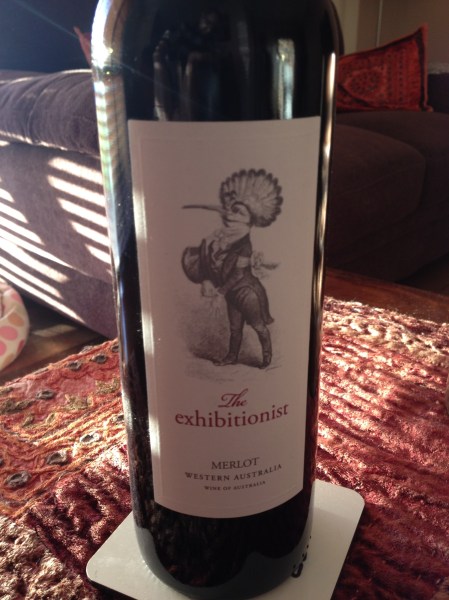 The Exhibitionist.  It’s a 2008 Merlot from a blend made here in good old Western Australia.  WA is usually famous for it’s Cab Savs, but I guess it can grow whatever grapes it wants, including Merlot