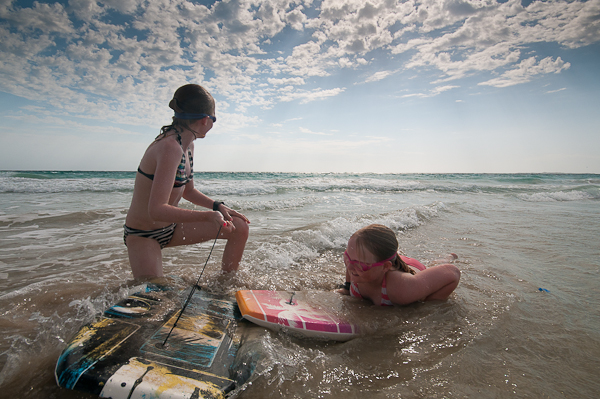 The girls wanted to try out their new boogie boards and as the wind was blowing pretty strongly, the ocean was likely to have a few good small children friendly sized waves.