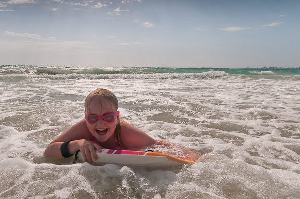 It was a pretty much perfect day for it. The girls grabbed their boards and headed out into the surf. The waves were maybe 3 feet or so, and as the beach is very shallow and I don’t think there are any rips here, it was pretty safe – still, I was keeping a watchful eye!