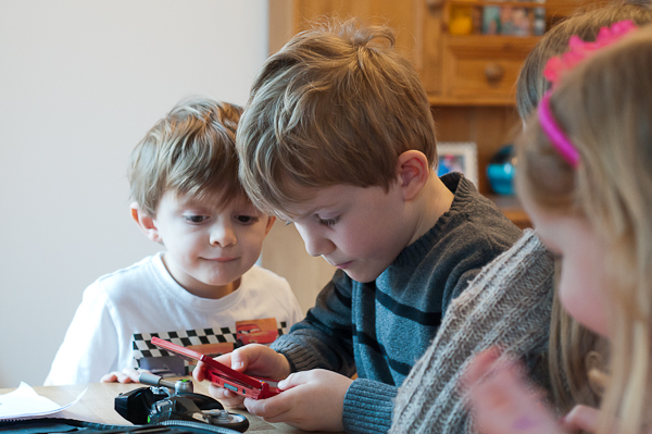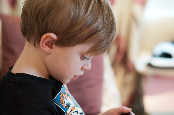 He did try to swim, but the belly ache he had when he got out indicated that he was actually trying to drink the pool level low enough so he could stand.Anyway, we went round to see some of their cousins (who live just down the road from my parents’ house) and had some fun 🙂  Fun mostly on their Nintendo DS’es and my iPhone.  Youth of today – what ever happened to Lego or a rousing game of ‘snap’?