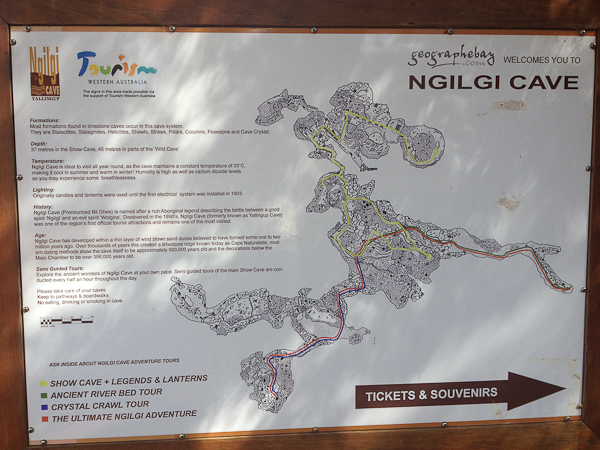 Ngilgi Cave is associated with a rich Aboriginal legend describing a battle between a good and an evil spirit. The local Wardandi people tell the story as: Ngilgi, a good warrior spirit, lived near the sea and Wolgine, an evil spirit, lived in the cave. Concerned for the welfare of his people, Ngilgi gathered together the spirits of the waves, lightning, rain, thunder and wind and they created a huge storm. Ngilgi attacked Wolgine and he gradually drove Wolgine back through the cave. So fierce was the battle that a tunnel collapsed, cutting the cave off from the sea. At last Wolgine was driven up through the earth creating the present entrance. Wolgine was banished from the cave and Ngilgi claimed it as his own
