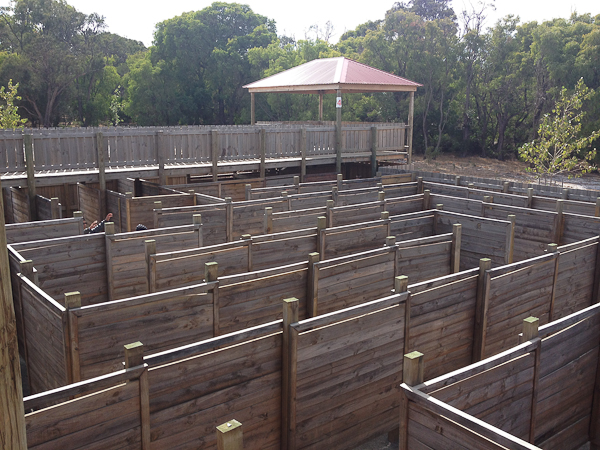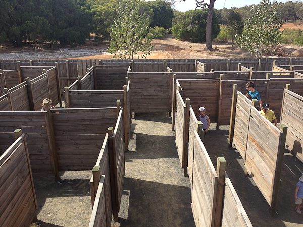 We went to Yallingup Maze after this – the children had seen it on the way to Hay Shed Hill and Margaret River and desperately wanted to go. It’s basically 4 towers and a load of fences arranged in a maze like fashion. There were loads of screaming kids and running teenage foreigners with cameras and it was hot and frustrating. In the end, we only made it to 2 of the towers before the kids got fed up and wanted to leave. So much for fun aimed at children!