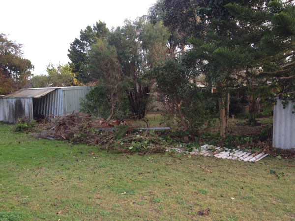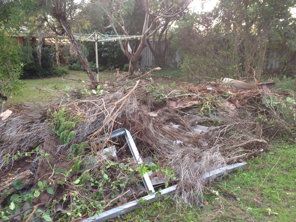 And lots of damage 😦  This is all thats left of my back fence and trees.