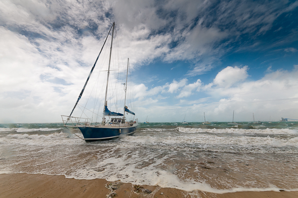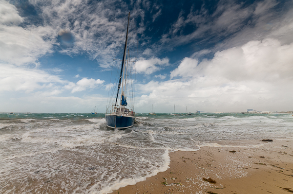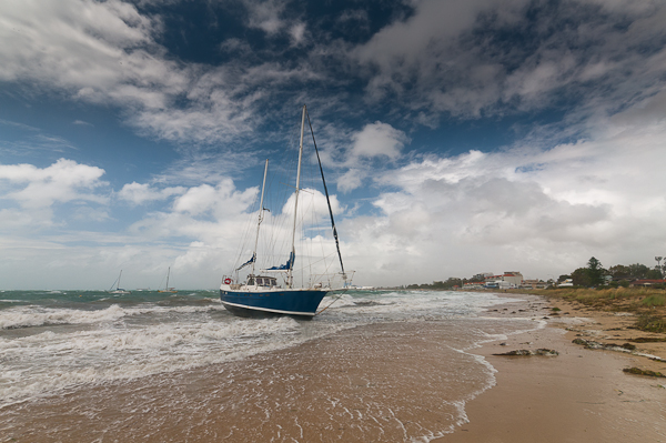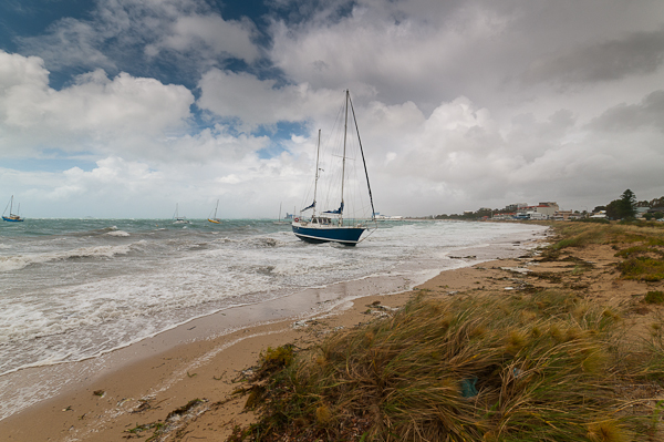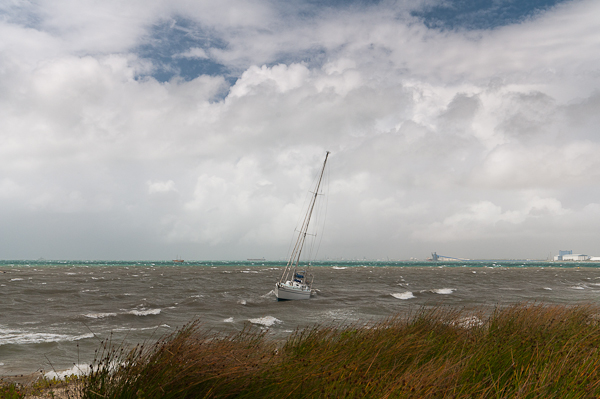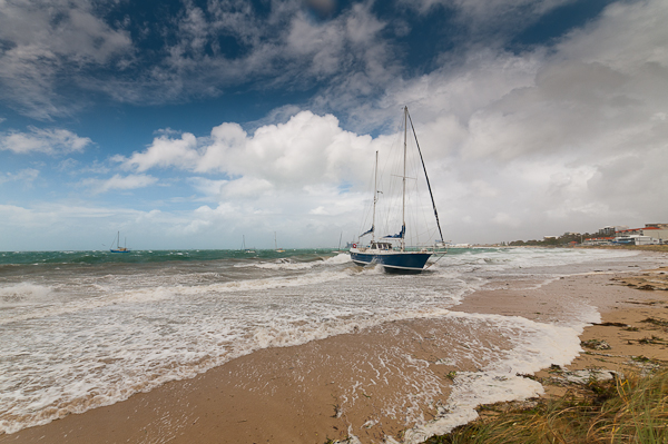 This was quite a large ketch rigged yacht that had come adrift and run ashore, thankfully its just soft sand and there’s probably little damage. No idea how they’re going to get it off – the tide is really high – when the storm goes, it’s going to be almost high and dry!