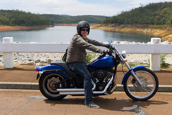 The Chief can’t go very fast, so it was a steady 70-80 out to Serpentine and then up into the hills through Jarrahdale.  The old General Stores was packed with bikers, so we decided to have coffee at the Cafe on the Dam up by Serptentine Dam.  It has excellent views and good food, but the flies were really annoying!!  That’s the country for you.  If you’re planning to come to Oz or head out to the country – get fly repellent!  Those cork hats from the stereotype Aussie country farmer – well, they have them for a reason!!