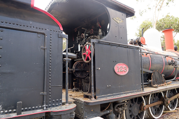 Rolf turned off down a little track by the railway in Pinjarra and we gingerly followed, bikes skipping on the gravel.  We rode into the old railway yard to see the old locos that form part of the Hotham Valley Railway .  Note to self, must go on that one day!