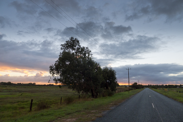 On my way to work, 6:50am, sunrise. It was already raining a bit, but I got very wet about 15 minutes later – on the freeway, nowhere to hide, the heavens opened.  Bugger!