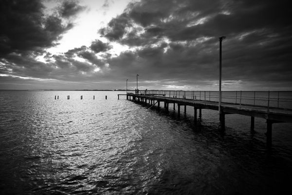 Back at Kwinana Jetty on a different night, the sky was moody but the colours were a bit flat and the photos looked a bot ordinary, so I converted a few shots to black and white as an experiment.   What do you think?