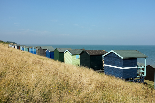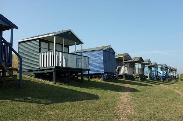 The traffic diabolical, even though we left early, so I pulled off the motorway at Whitstable and eventually we came to a traditional English seaside promenade with a grassed clifftop area, a pebble beach and gorgeous multicolour beach huts.
