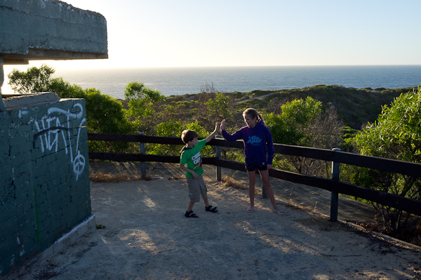 We walked up to the old WW2 gun emplacement and then down onto the beach, poking around the rockpools for crabs and other goodies.We had a great time, the day was still warm as the sun was setting, but it wasn’t stupidly hot, so we could explore without melting.