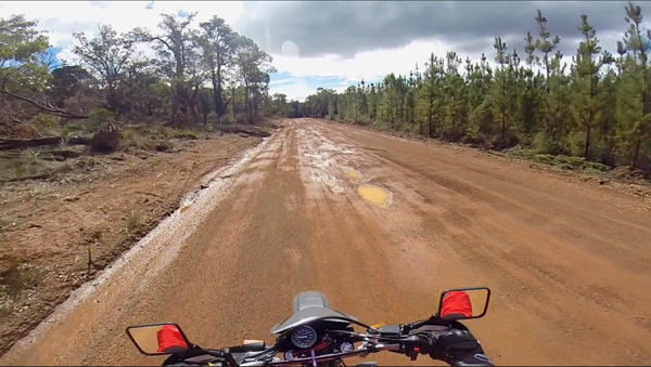 It’s a well graded dirt road, so no drama hammering down here at warp speed, just being watchful as I had never been that way before and I didn’t want to get surprised by a right angle bend or some logging works at 110kph!
