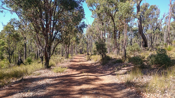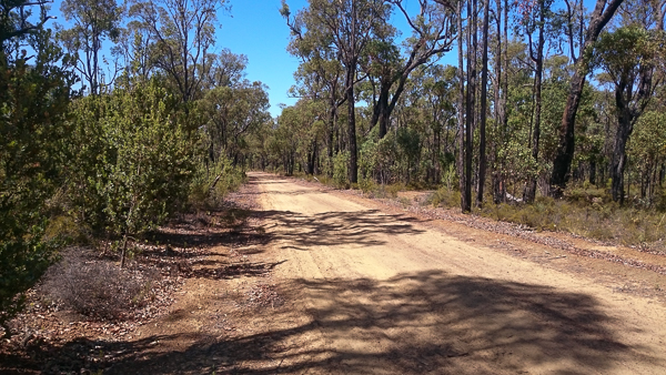 Further on, the woodland started to change from the close packed Jarrah to a more open Eucalypt woodland – dominated by these pale barked trees with open grass underneath. Beautiful. The roads were wide and largely good quality, but still lots of that cursed pea gravel, which when combined with corrugations, was a nightmare to maintain speed.