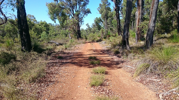 Crossing Solus Road, I’d found an old logging road on Google Earth – it was partially marked, but I had traced out the red dirt path on the screen to join up these two sections of forest that are otherwise cut by that cursed Alcoa bauxite mining. As it turned out, this was probably the most fun section on the whole trip – it was mostly packed dirt not marble like gravel (which is so sketchy to ride on that you can never settle completely and often have those ‘oh shit’ sliding or massive bar wobble moments) and it was tight, twisty and clearly very underused. Awesome.