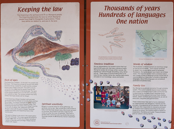 Apparently the place has significance to local Aboriginal culture – I can see why, it really is beautiful, surrounded in dense woodland.