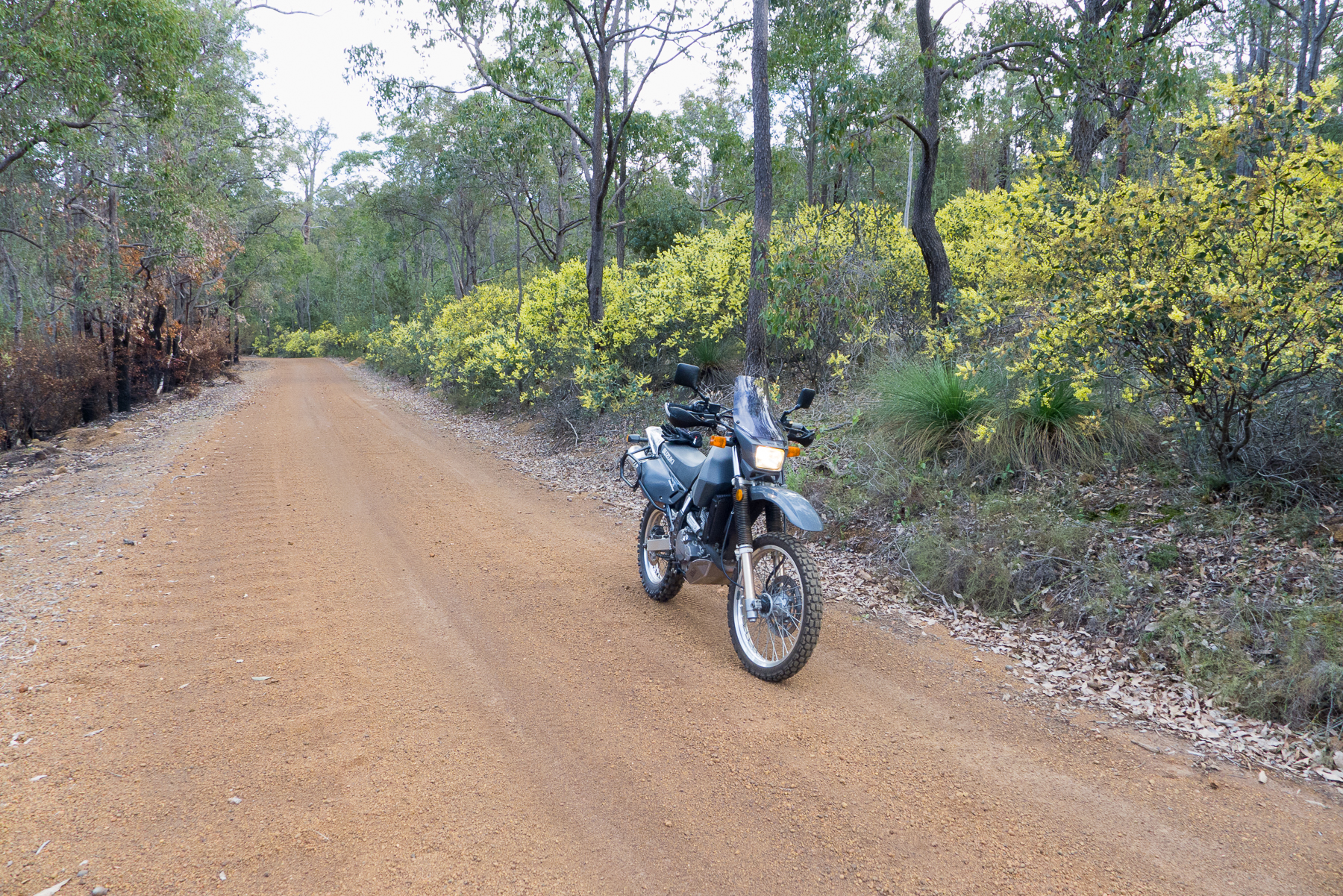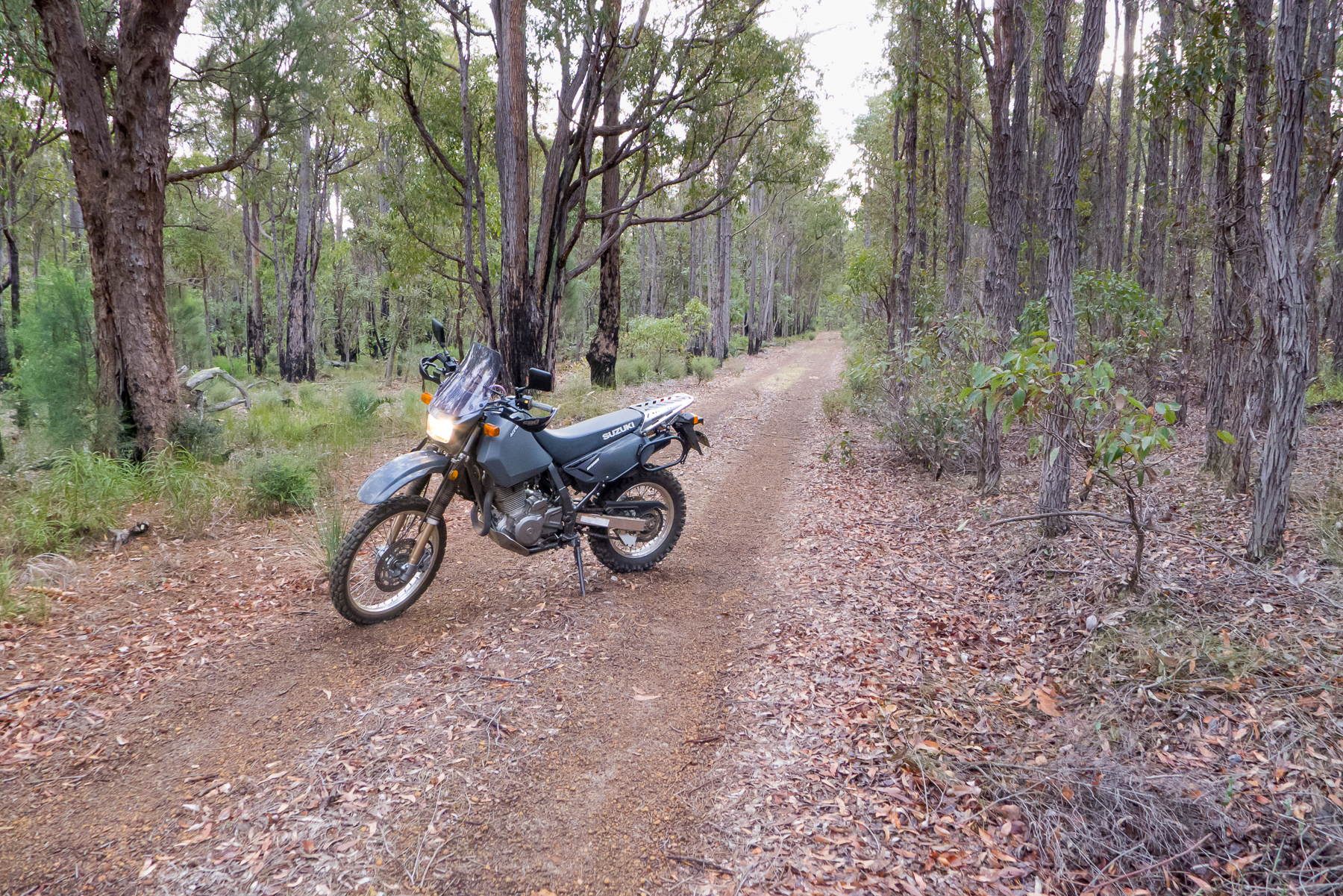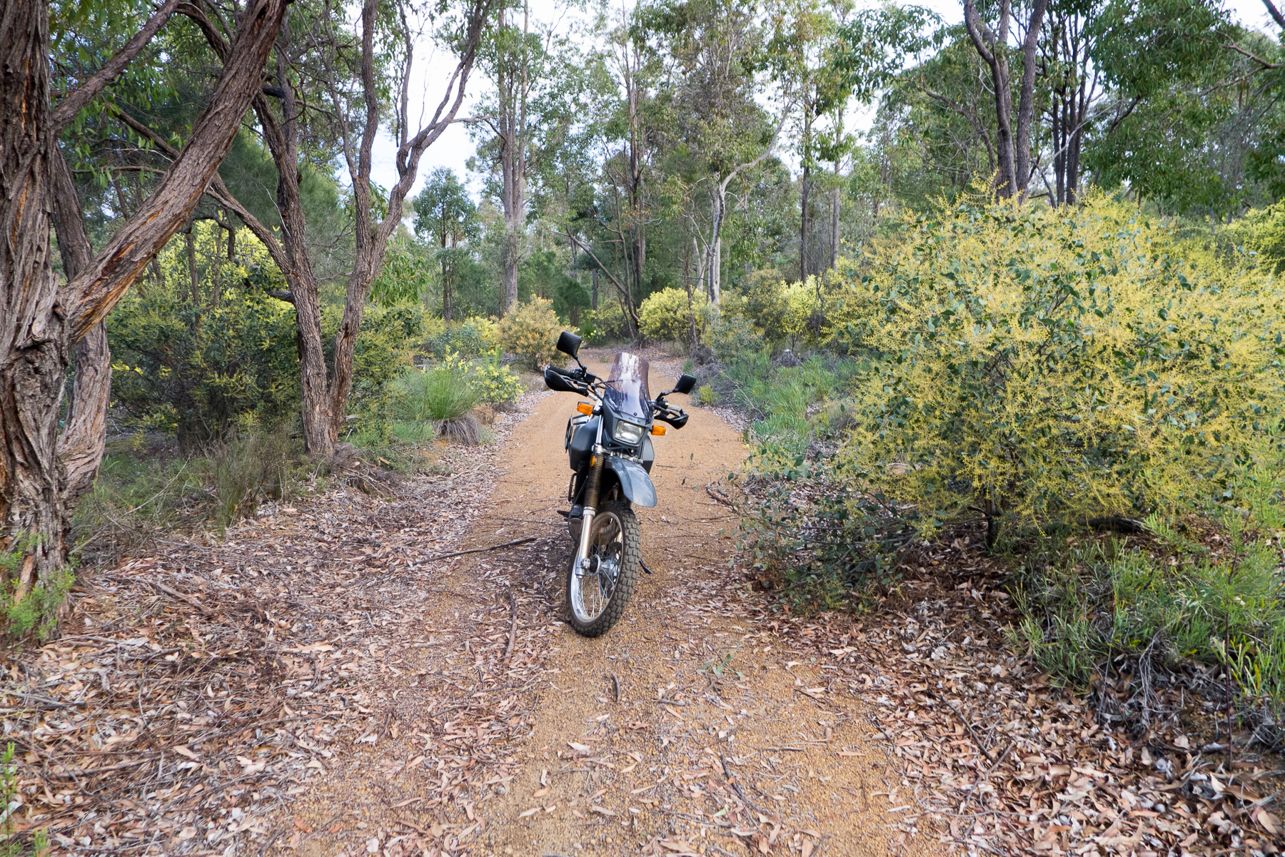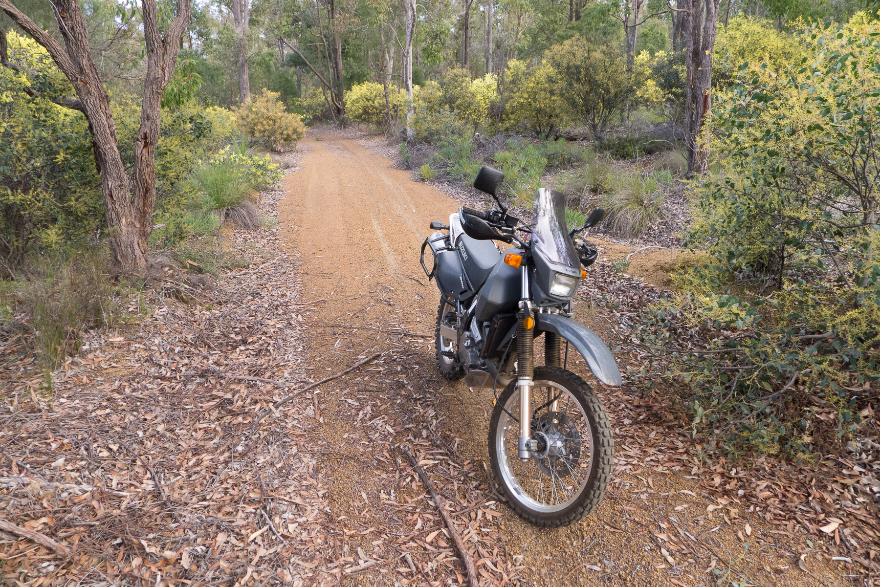 Deeper into the forest, it gets loamy rather than packed pea gravel, which is much more fun to ride on – by now I was getting a little more tuned into what the bike was doing and I could open it up a bit. Which of course was just when the kangaroos burt out of the forest and across the train in front of me to give me a minor heart attack!