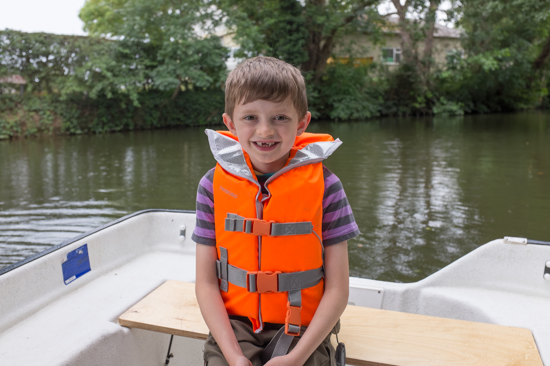 Ella and I had an oar each and we succeeded on going around in circles more than once! Henry sat on the back of the boat and enjoyed himself as he was a little small to be pulling an oar. We’d only been out for a few minutes when the heavens opened and we had to seek shelter under a bridge for a while. Undeterred, as soon as it let up raining, we carried on and rowed around the island.
