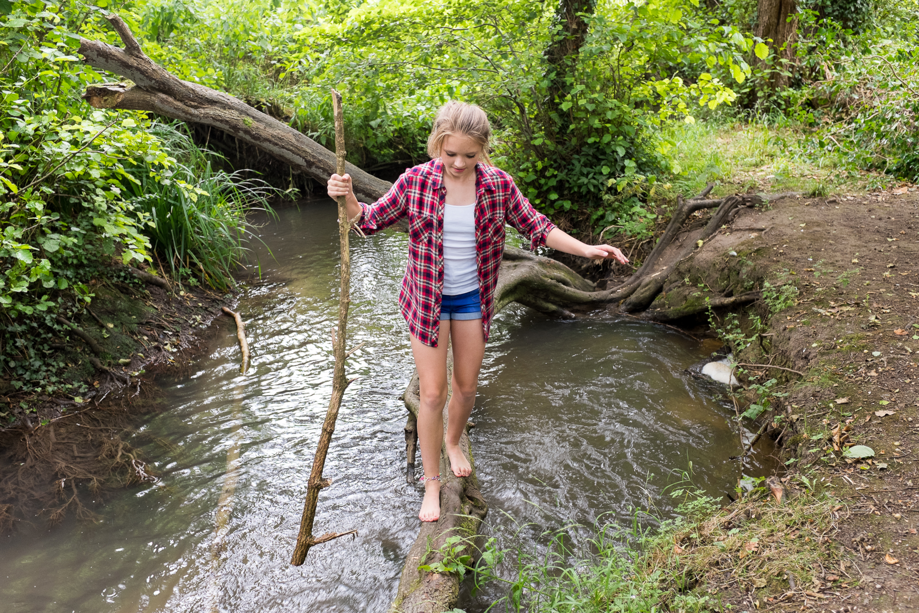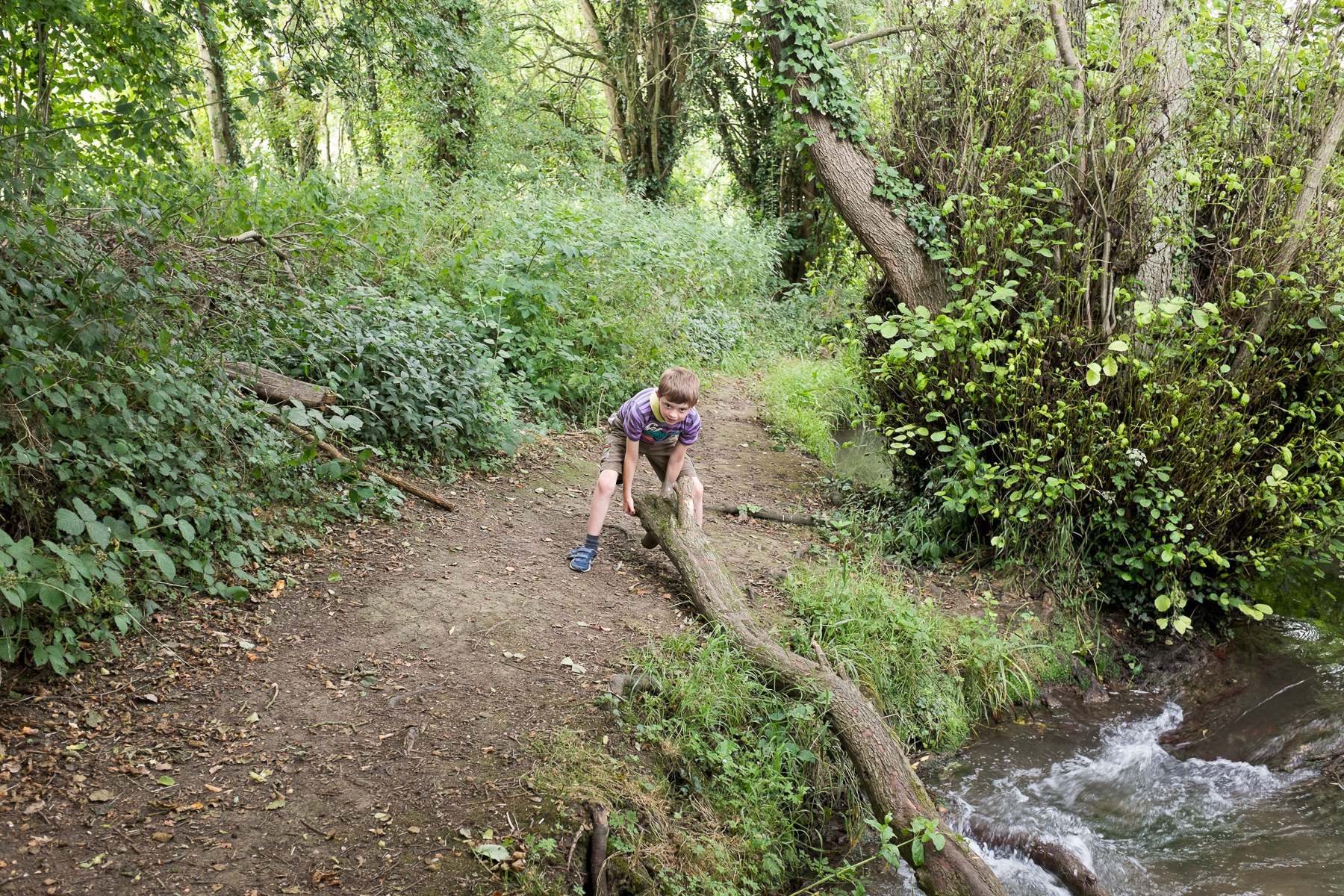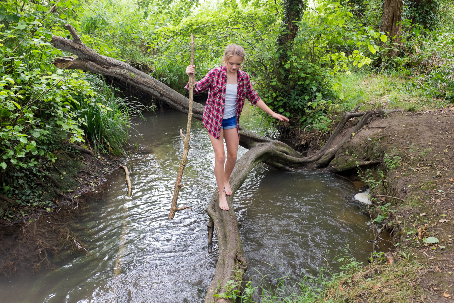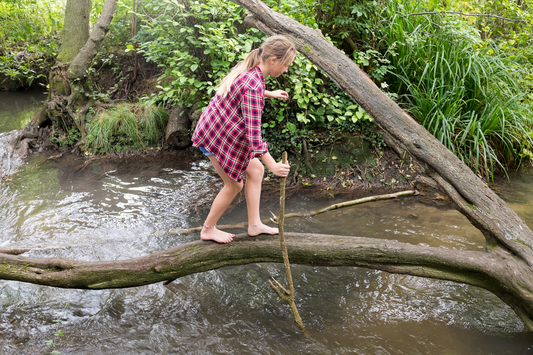 Ella found a tree branch down across the water and wanted to walk along it – I suggested she remove her brand new trainers..just in case!