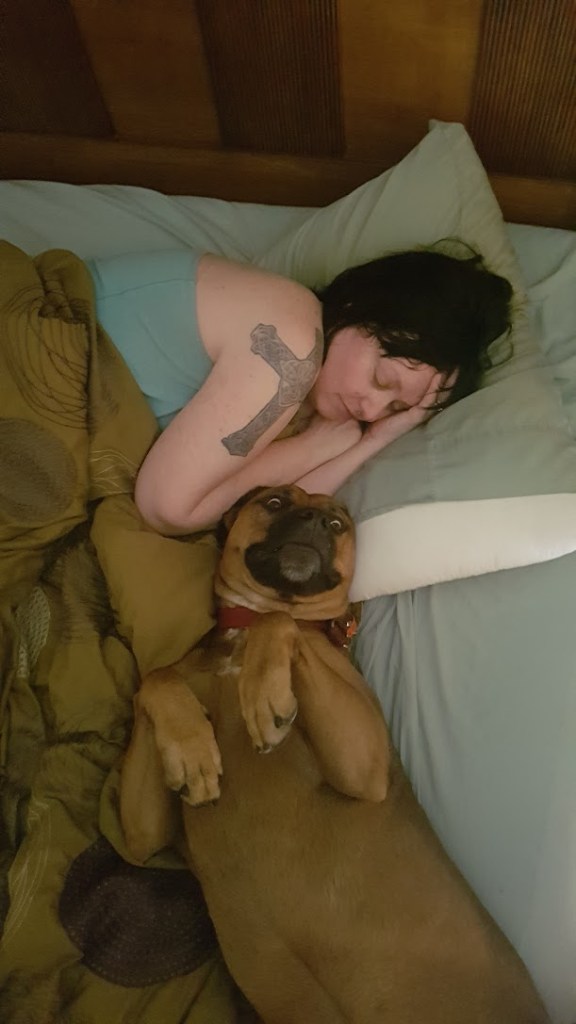 How she used to come running into the bedroom and vault over the end of the bed and lay lengthwise right on top of me on the bed, tail wagging and full of love