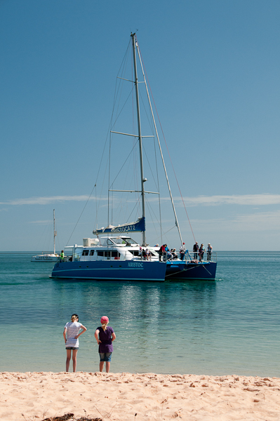 On the last day, we went back to Monkey Mia to go on a catamaran, the Aristocat 2, which sails out into Shark Bay in search of dolphins, turtles, dugongs and black pearls. It was a beautiful day, in contrast to the day before – we really do have the best luck!