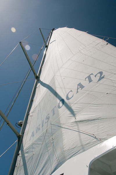 We sailed off in search of wildlife – there were lots of dolphins around – small pods mostly, but then a bigger one with a juvenile came over to investigate and swam with the boat for a while, which was very cool.