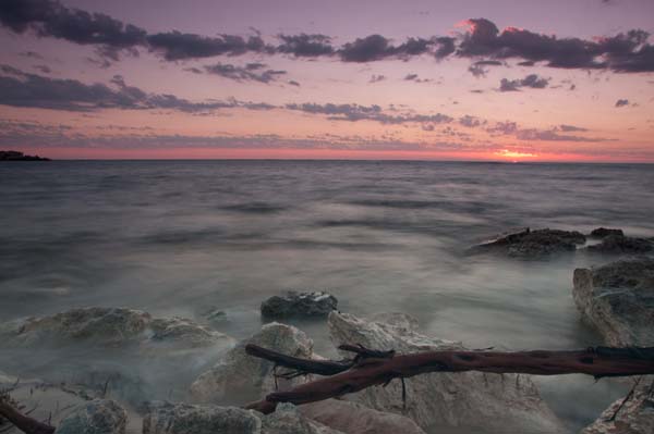 Anyway, all this technical mumbo jumbo is all well and good, but the upshot of the camera being open for at least 3 minutes is that the ocean is totally smoothed out and the camera has captured the clouds moving.
