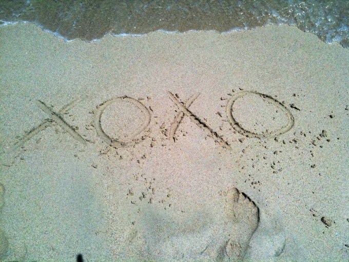 It was a beautiful morning, very still and the sea was very clear and gorgeously warm. We splashed about for a while, avoiding the transparent teeny (but not stingy) jellyfish, then built some sand castles and tried to keep the waves at bay. The wind picked up, as it does here, around noon and we got some good waves to belly surf in before coming home.