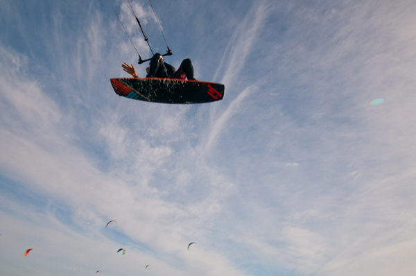 I met a lad from Devon with a camcorder in a waterproof housing filming his mates doing some cool tricks. It turns out he’s Ned Taylor, UK #1 freestyle champ. Not that he even really mentioned he did much kite surfing. So much modesty! I’m sure I got some shots of him the other day actually – be good to see what he can do for the camera.